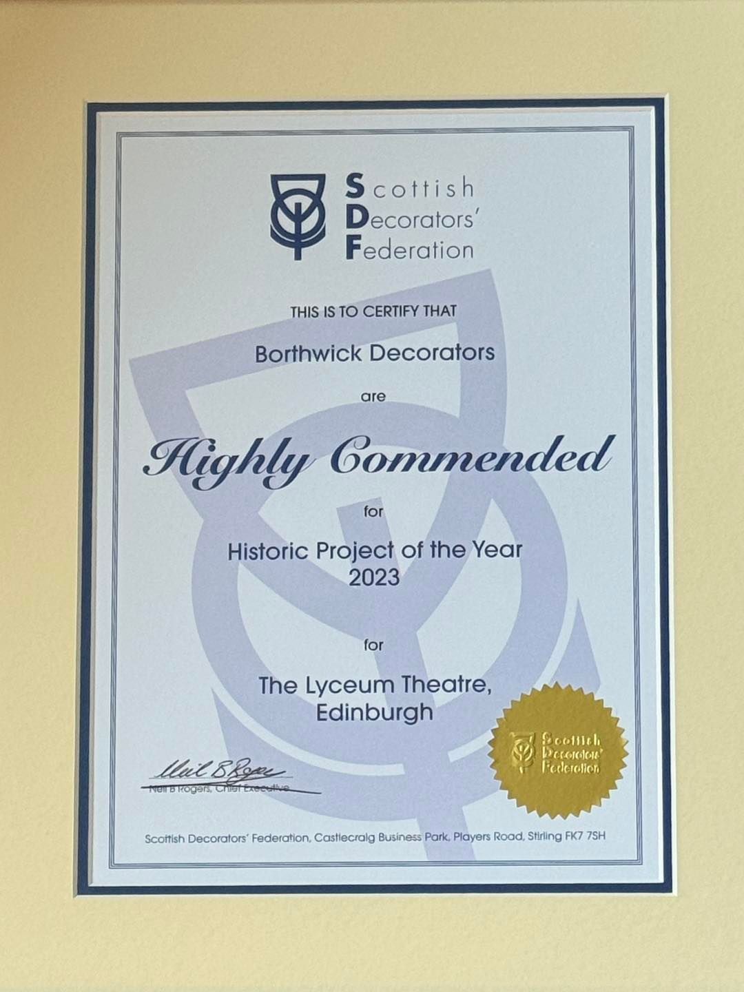 Borthwick Decorators is proud to announce that our team has been awarded the highly commended accolade for Historic Project of the Year 2023 by The Scottish Decorators' Federation.
